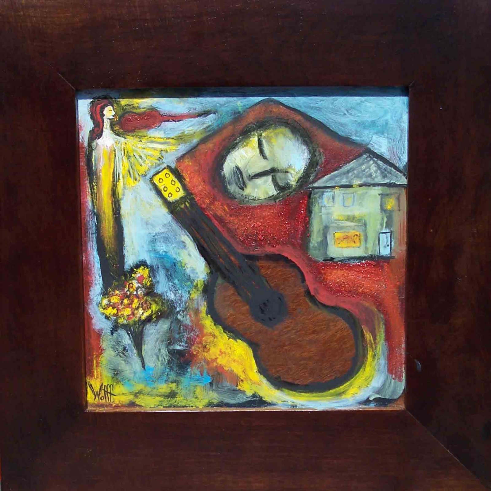 Previous ImageNext Image Night House Night House, 9×9″ HxW (painting), 14×14″ (frame+painting), Oil Paint & Mixed Media on Wood (Frame is Part of Artwork)